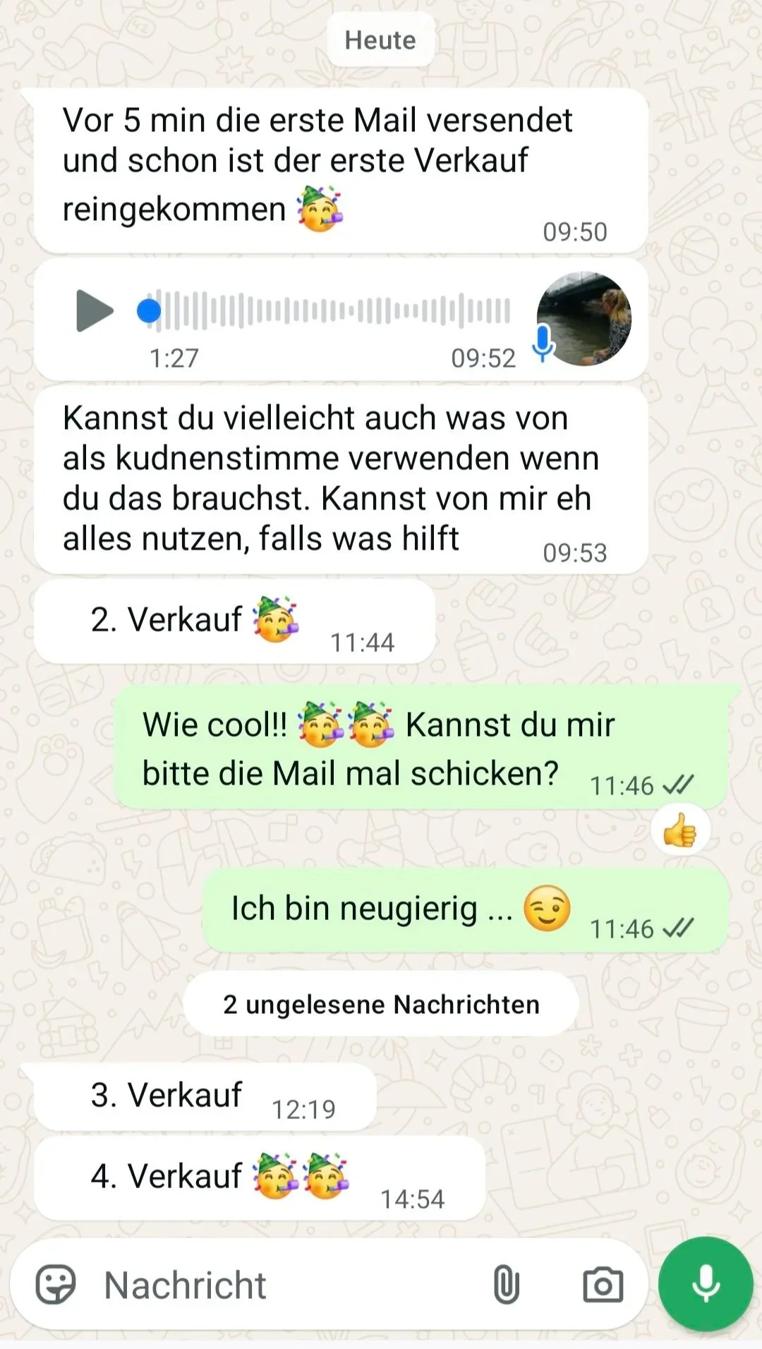 Ich empfehle mindestens eine E-Mail pro Woche und hoffe insgeheim: Wenn du erst mal merkst, wie leicht es geht und die ersten Verkäufe reinkommen, bekommst du wahrscheinlich Lust, häufiger zu mailen ;)